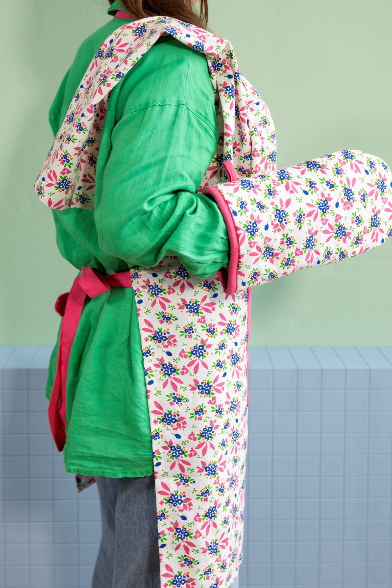 The apron can be perfectly combined with the matching tea towels, pot holders, placemats and tablecloths from the same collection. It also forms a harmonious whole on the table with the colourful tableware.