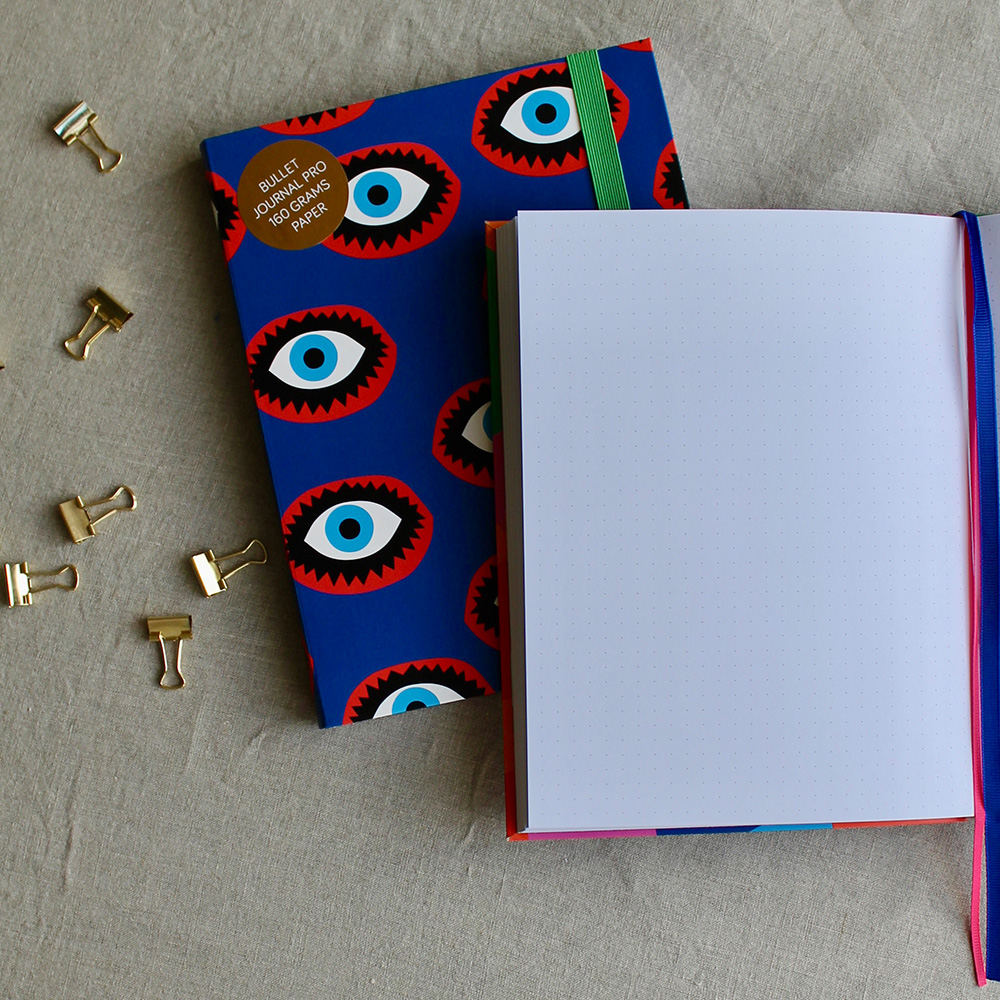 Kitsch Kitchen bullet journal - Eyes. Unleash your creativity with this bullet journal from Kitsch Kitchen. This luxurious journal serves as the perfect canvas for your thoughts, dreams, and goals. The all-round dot layout and high-quality paper make planning and doodling an absolute pleasure. With vibrant colours and quirky designs from Kitsch Kitchen, journaling transforms into an art form. The possibilities are as limitless as your imagination.